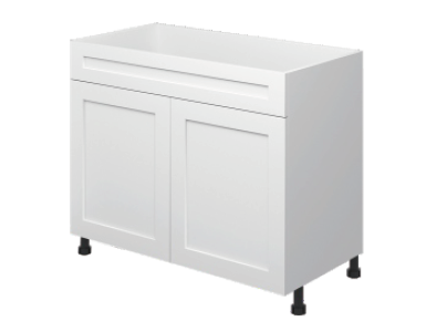 Designed for sink installations, this cabinet features a false top drawer front for a custom look and a spacious lower area for storage.